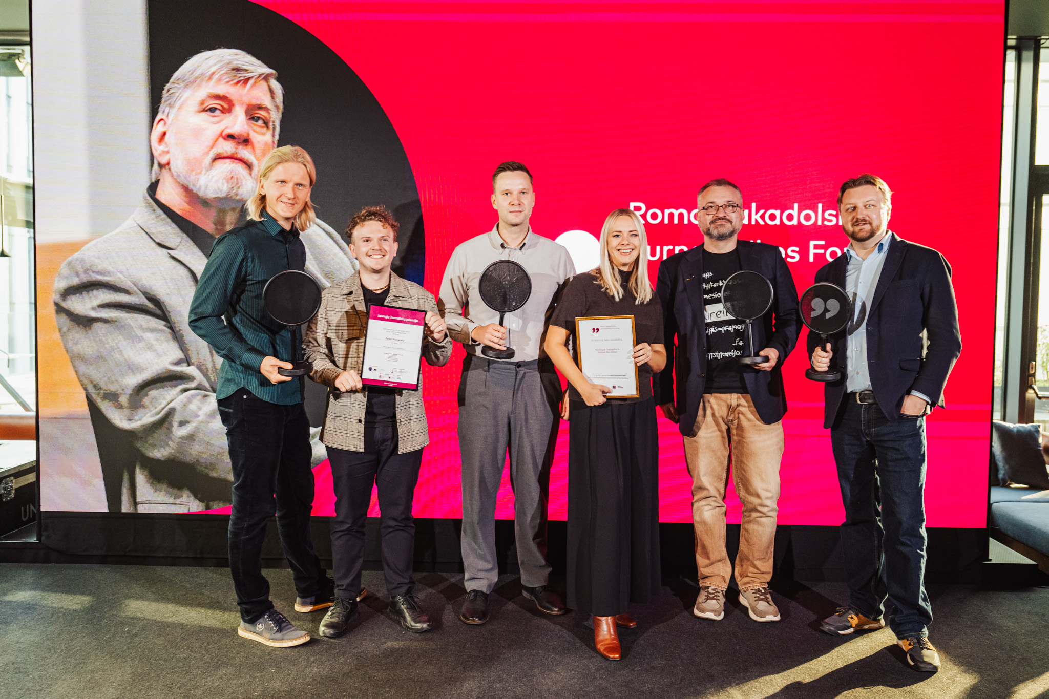 Romo Sakadolskio premija už žurnalistinius tyrimus ankstesniais metais skirta Birutei Davidonytei ir Dovydui Pancerovui (tyrimas „Fūrų vergai“), LRT tyrimų skyriui (tyrimas „Riaušių anatomija“), 15min tyrimų skyriui (tyrimas „Šiukšlių pogrindis“) bei „Redakcijai“ (tyrimas „Neleisk mūsų gundyti“).